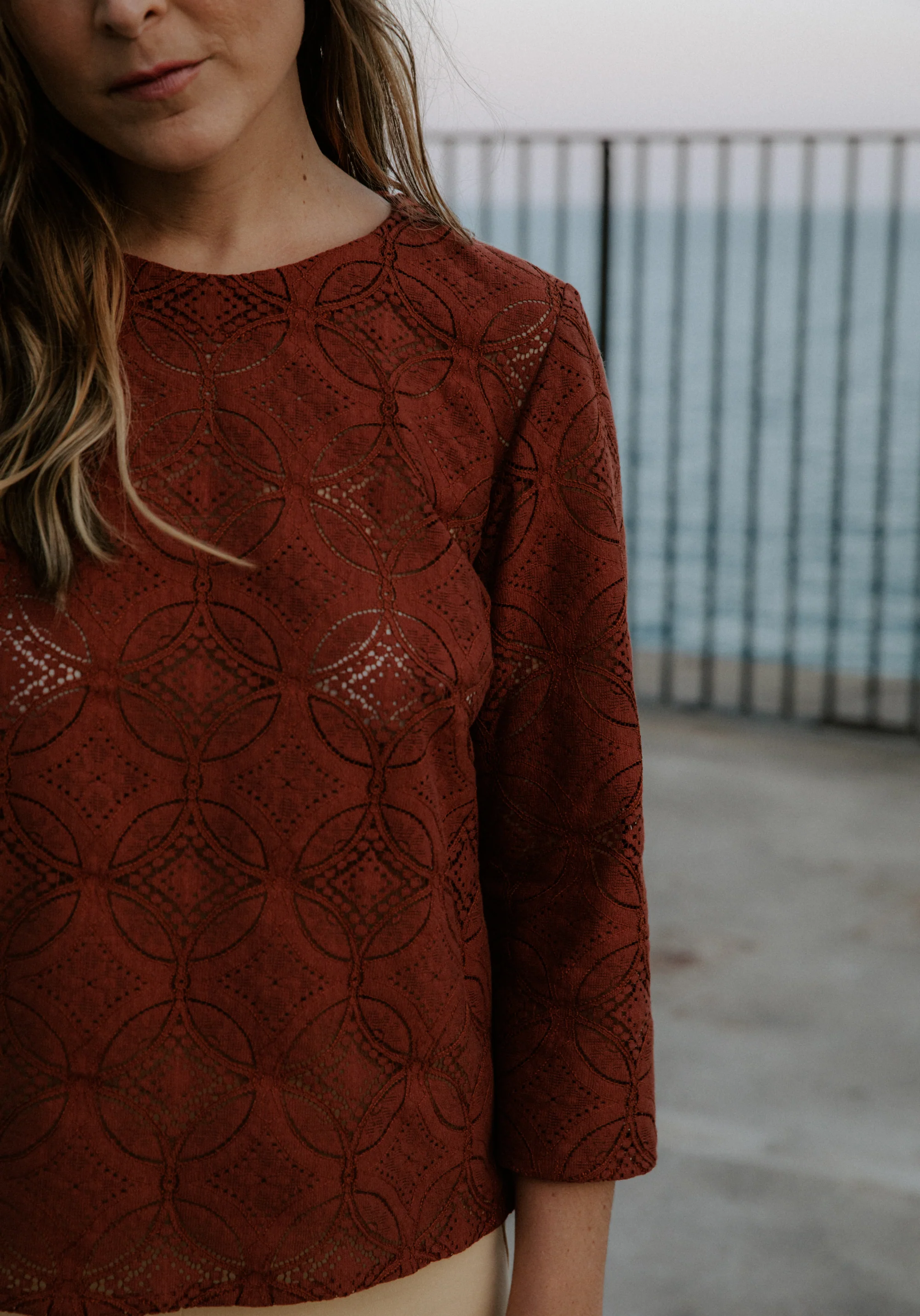 VIOLETTE est une jolie blouse à pli creux dans le dos avec une patte de boutonnage à 3 boutons. Sa ligne est cintrée mais pas moulante, l’encolure ronde est peu échancrée. Violette comporte des manches ¾.