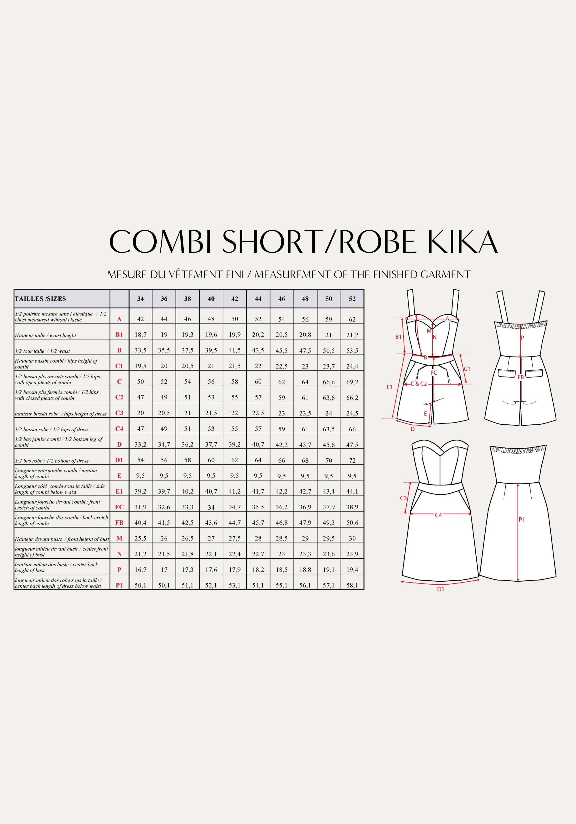 Patron couture combinaison Kika / PDF (A4, A3, A0, US Letter) - Cadres, Calques par Taille, Vidéoprojection